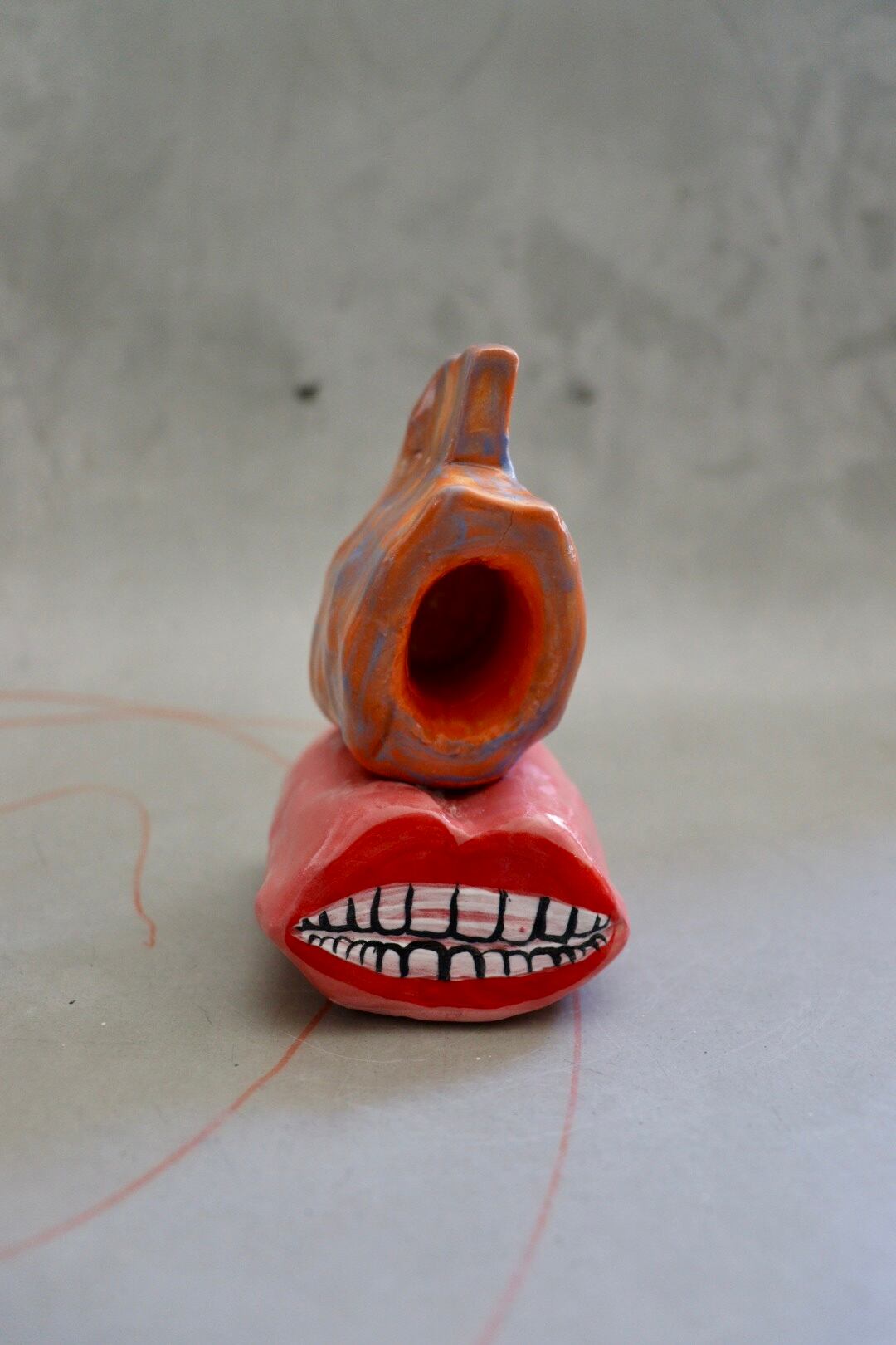 口は両サイドに絵があり、気分で歯あり、歯なし選んで頂けます。
