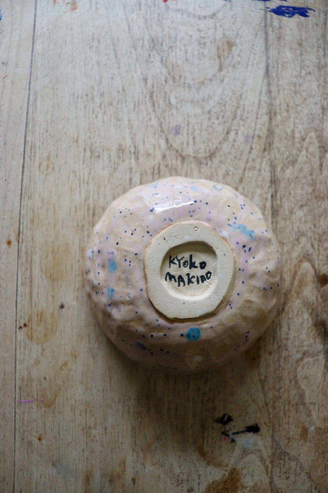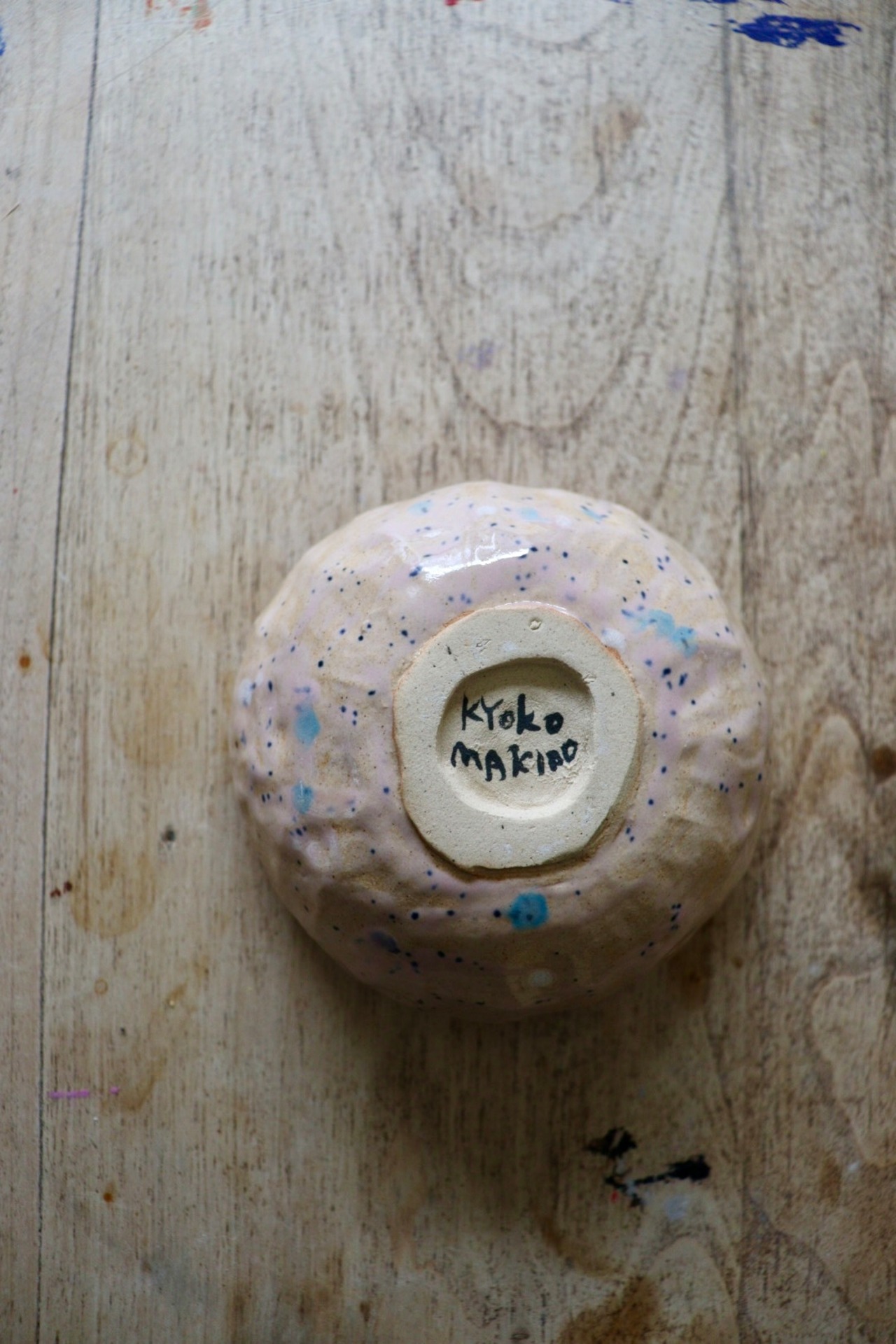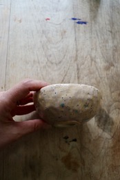 ピンクに青い点々が可愛お皿です。