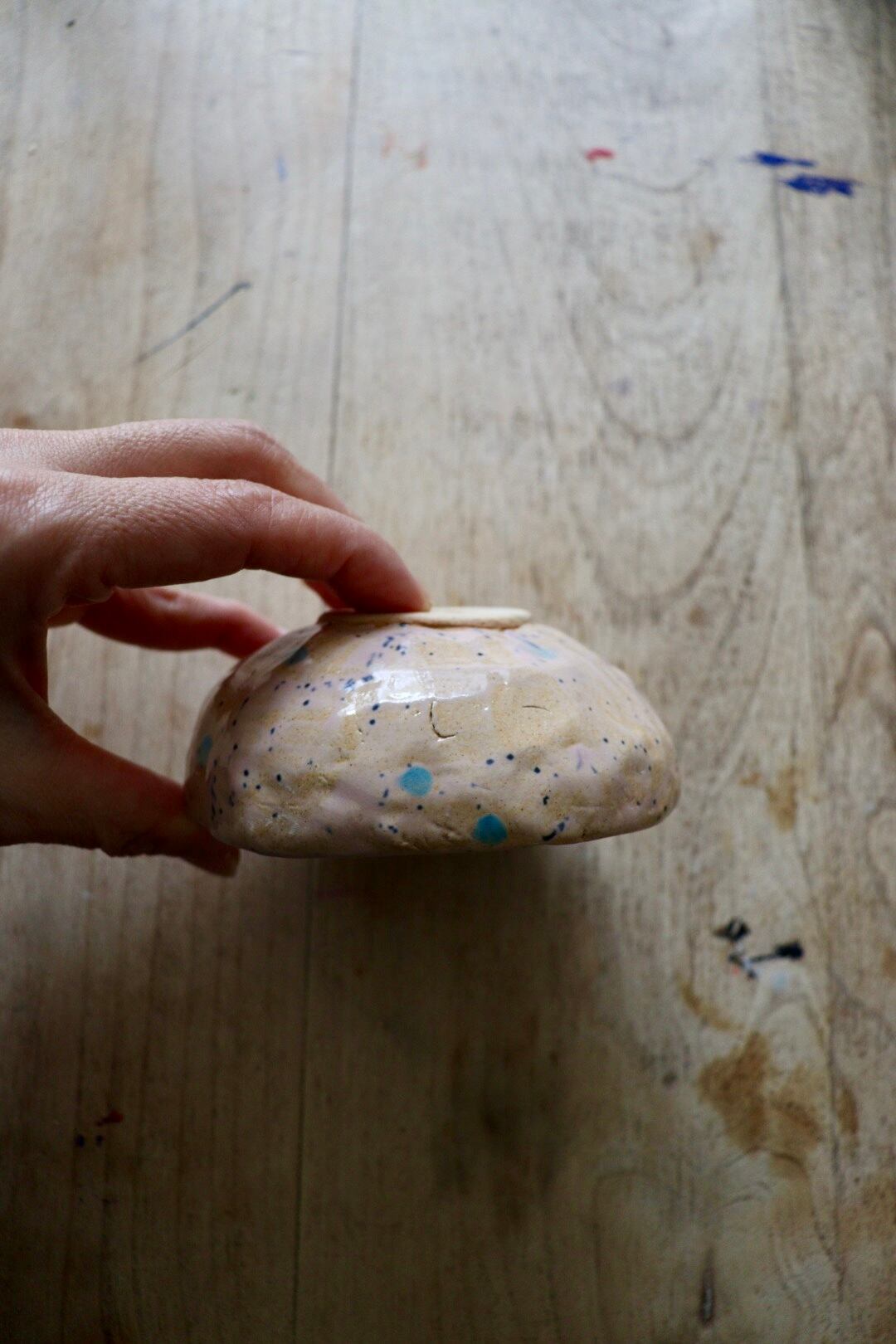 ピンクに青い点々が可愛お皿です。